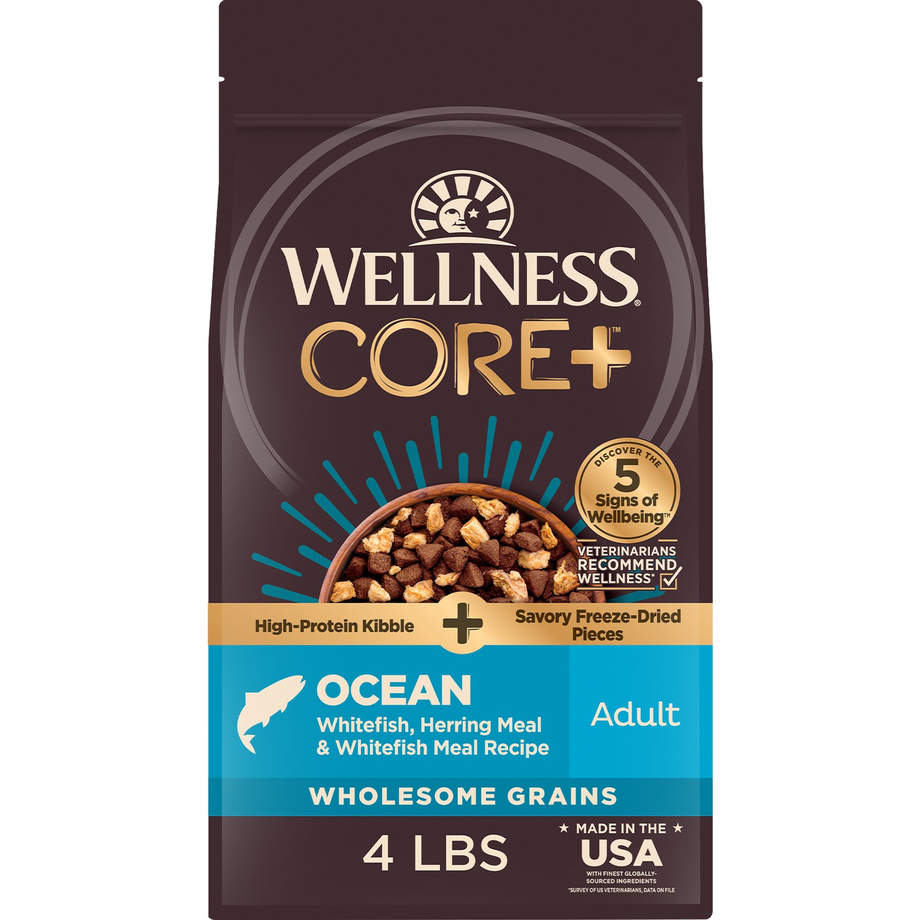 42 Ingredients: Whitefish, Herring Meal (source of Glucosamine and Chondroitin Sulfate), Oatmeal, Barley, Whitefish Meal, Canola Oil, Dried Plain Beet Pulp, Flaxseed, Natural Flavor, Dried Chicory Root, Choline Chlor