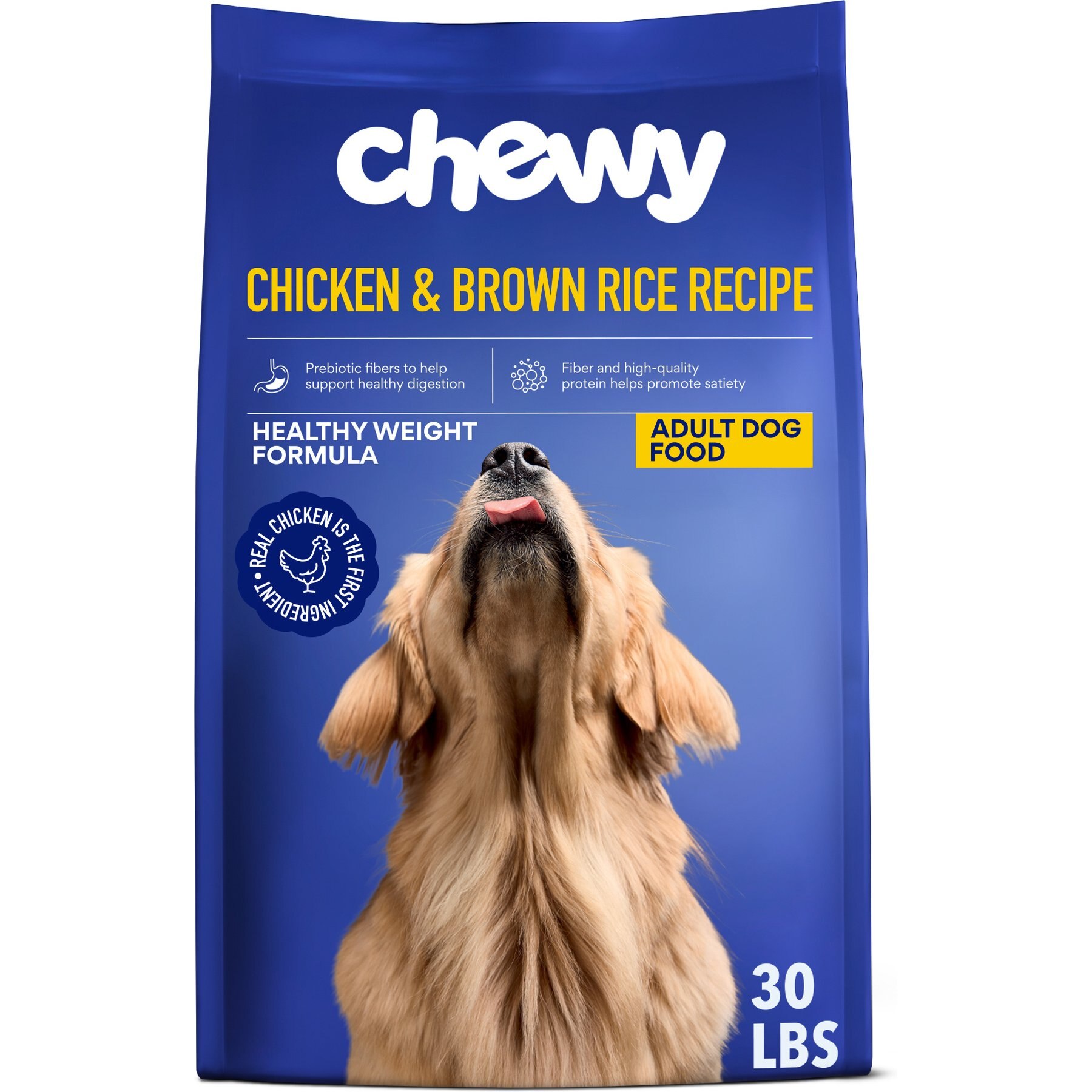 34 Ingredients: Chicken, Brown Rice, Soybean Meal, Whole Ground Wheat, Ground Corn, Corn Protein Meal, Natural Poultry Flavors, Chicken By-Product Meal (Source of Glucosamine), Dried Peas, Cellulose, Chicken Fat (Pre