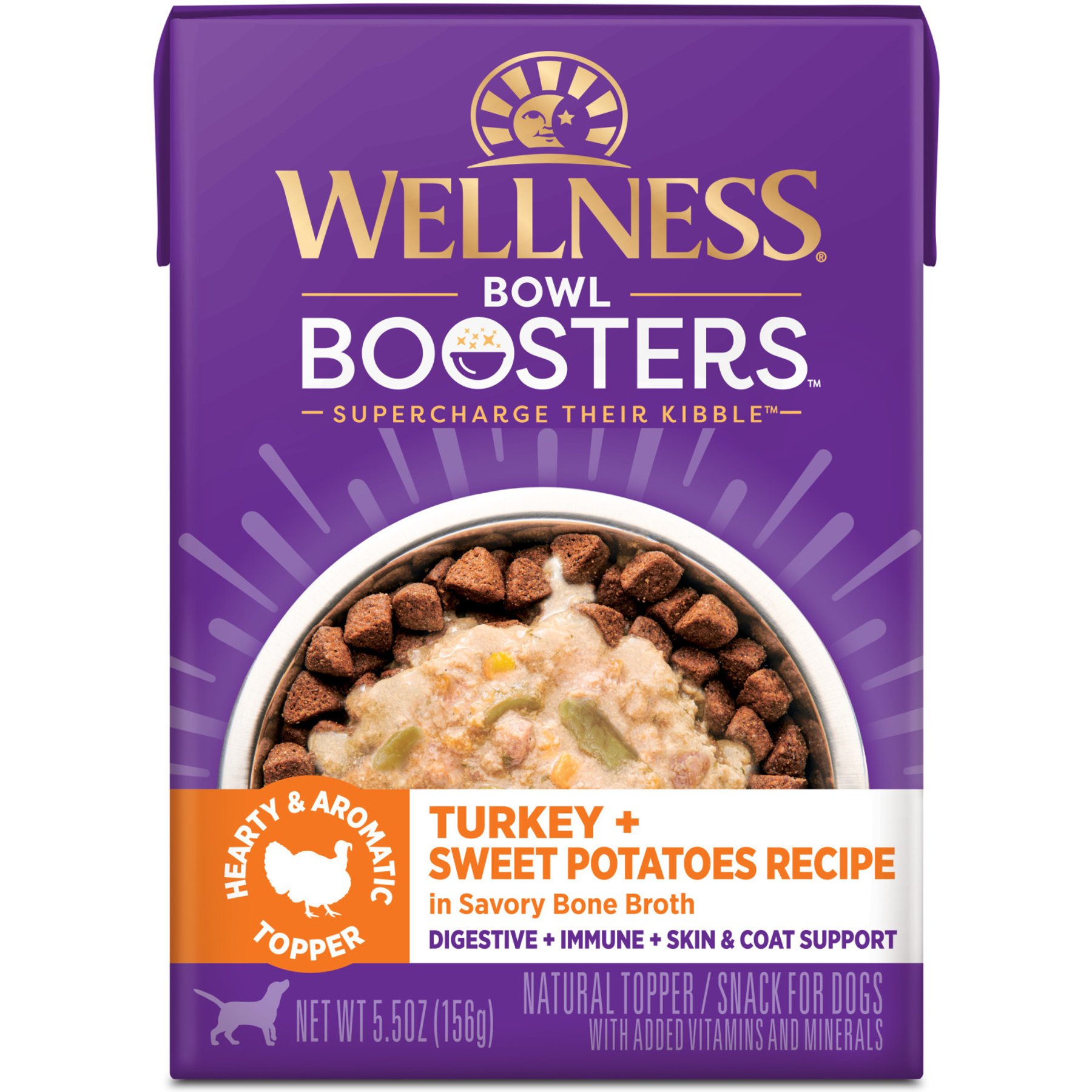 14 Ingredients: Turkey Bone Broth, Turkey, Tapioca Starch, Sweet Potatoes, Green Beans, Red Bell Pepper, Salt, Flaxseed Oil, Dried Chicory Root, Zinc Amino Acid Chelate, Sage, Turmeric, Parsley, Vitamin E Supplement.