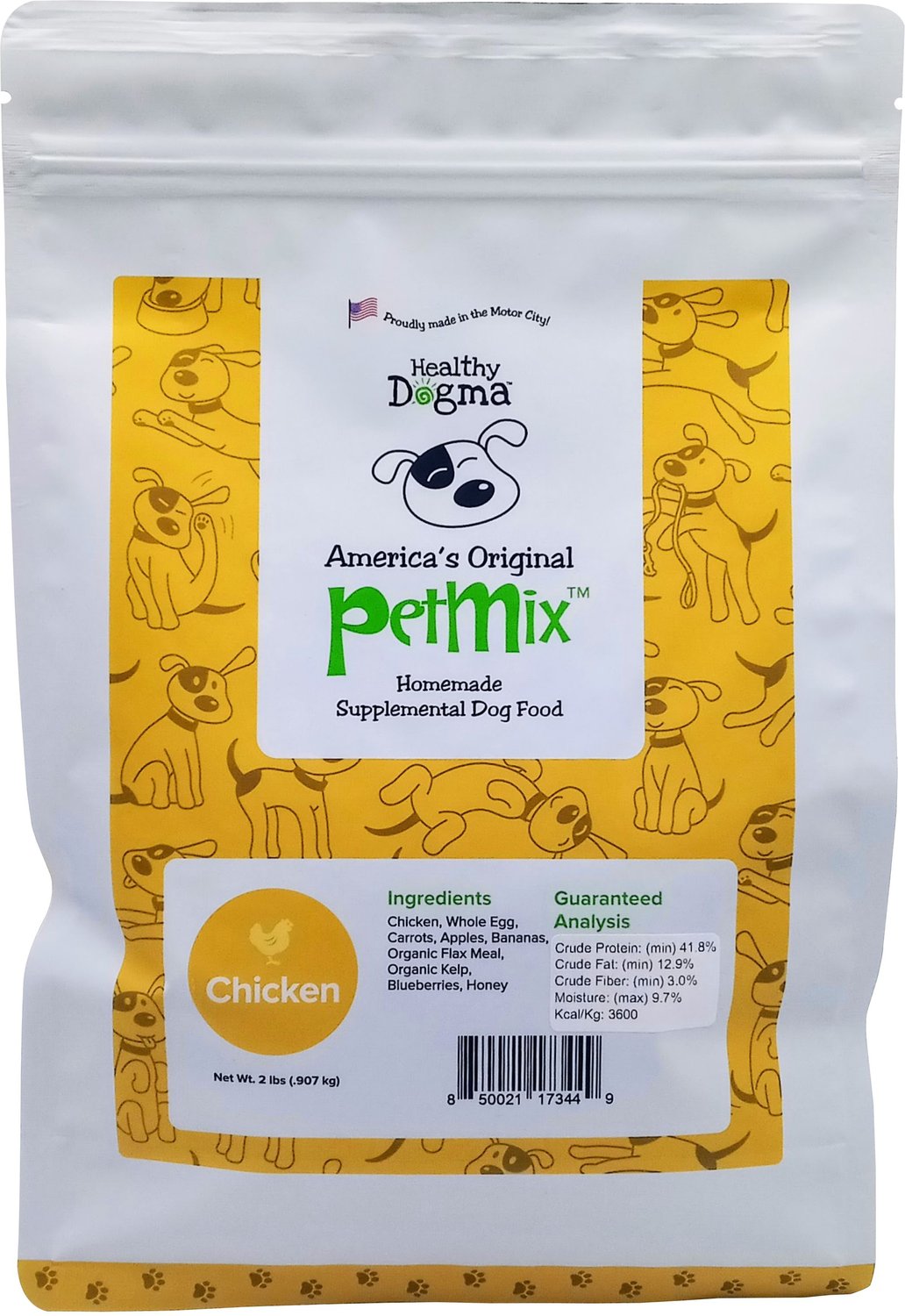 11 Ingredients: Freeze-Dried Chicken Pieces, Chicken Powder, Eggs, Broccoli, Carrots, Pommace, Apples, Kelp, Flax, Bananas, Blueberries