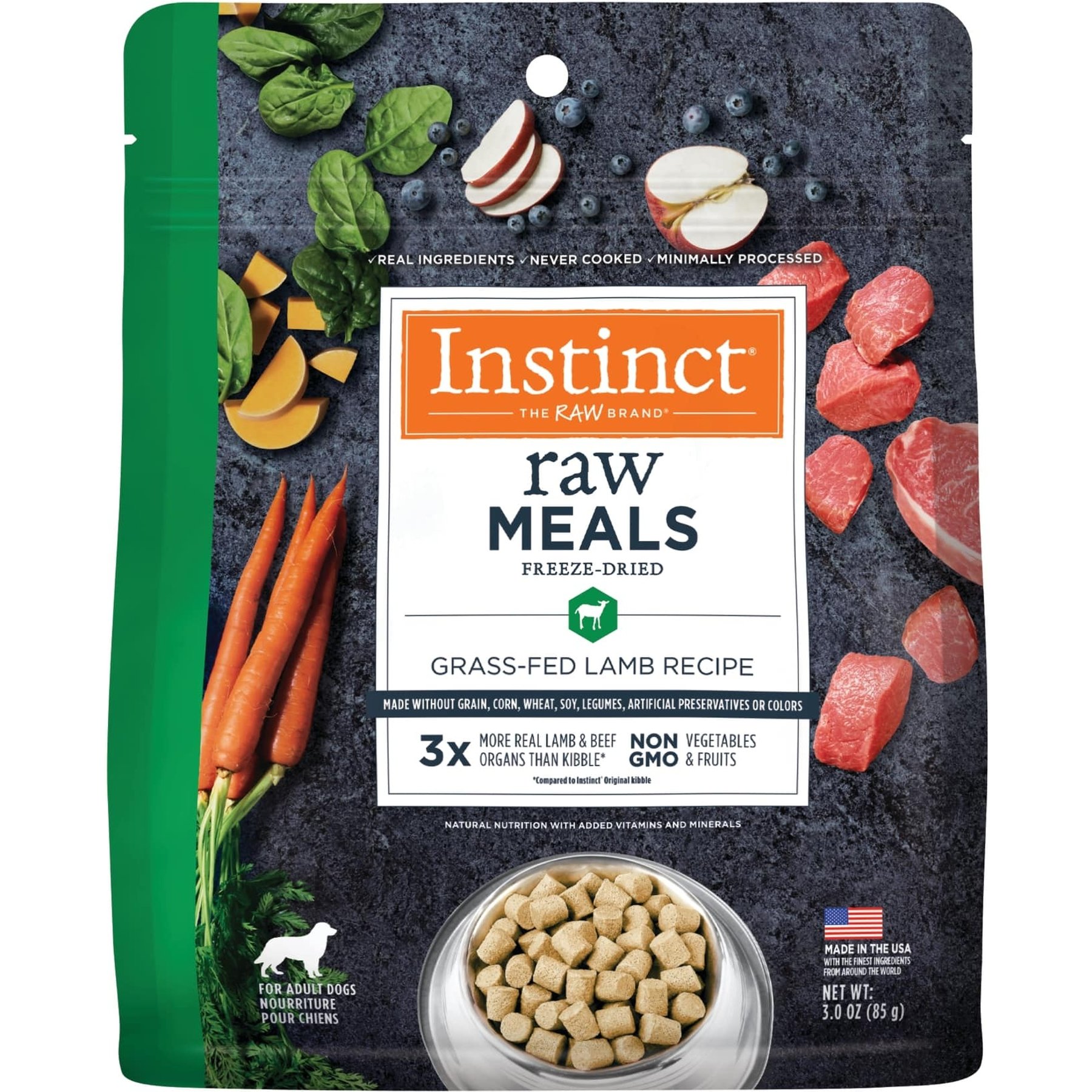 24 Ingredients: Lamb, Beef Liver, Beef Kidney, Beef Spleen, Carrots, Apples, Sweet Potatoes, Butternut Squash, Montmorillonite Clay, Ground Miscanthus Grass, Ground Flaxseed, Tricalcium Phosphate, Salmon Oil, Vitamin