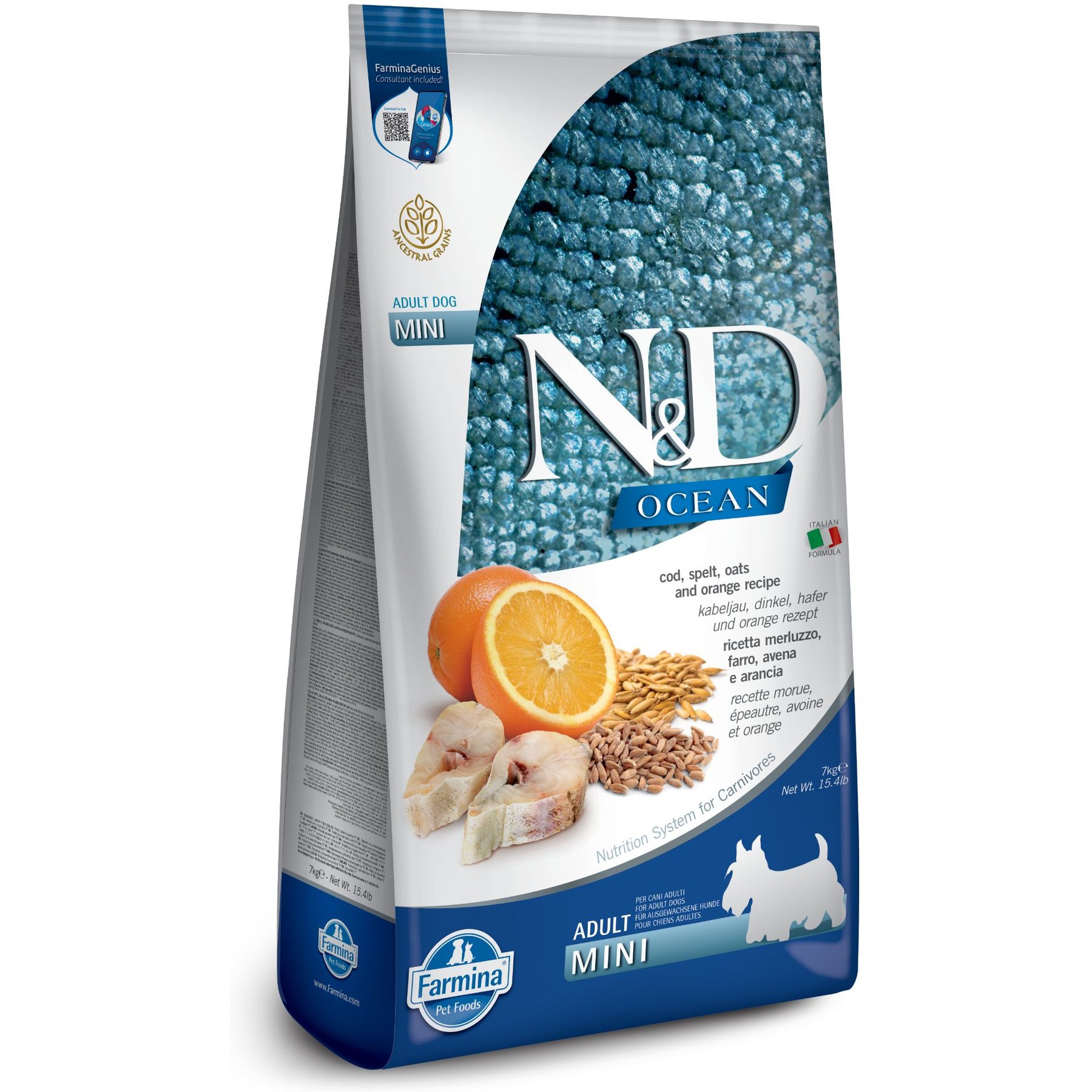 47 Ingredients: Cod, Dehydrated Cod, Herring Oil, Whole Spelt, Whole Oats, Dried Beet Pulp, Dried Carrots, Sun-Cured Alfalfa Meal, Inulin, Fructooligosaccharides, Yeast Extract, Dried Sweet Orange, Dried Apple, Dried