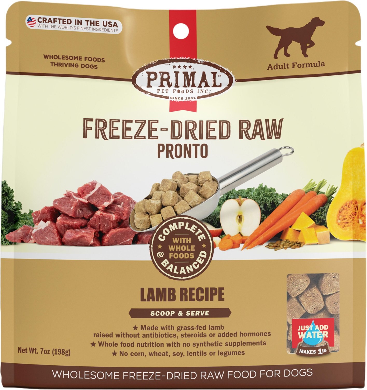26 Ingredients: Lamb (with ground bone), Lamb Liver, Organic Carrots, Organic Squash, Organic Kale, Organic Apples, Organic Parsley, Organic Pumpkin Seeds, Organic Sunflower Seeds, Organic Broccoli, Organic Blueberri