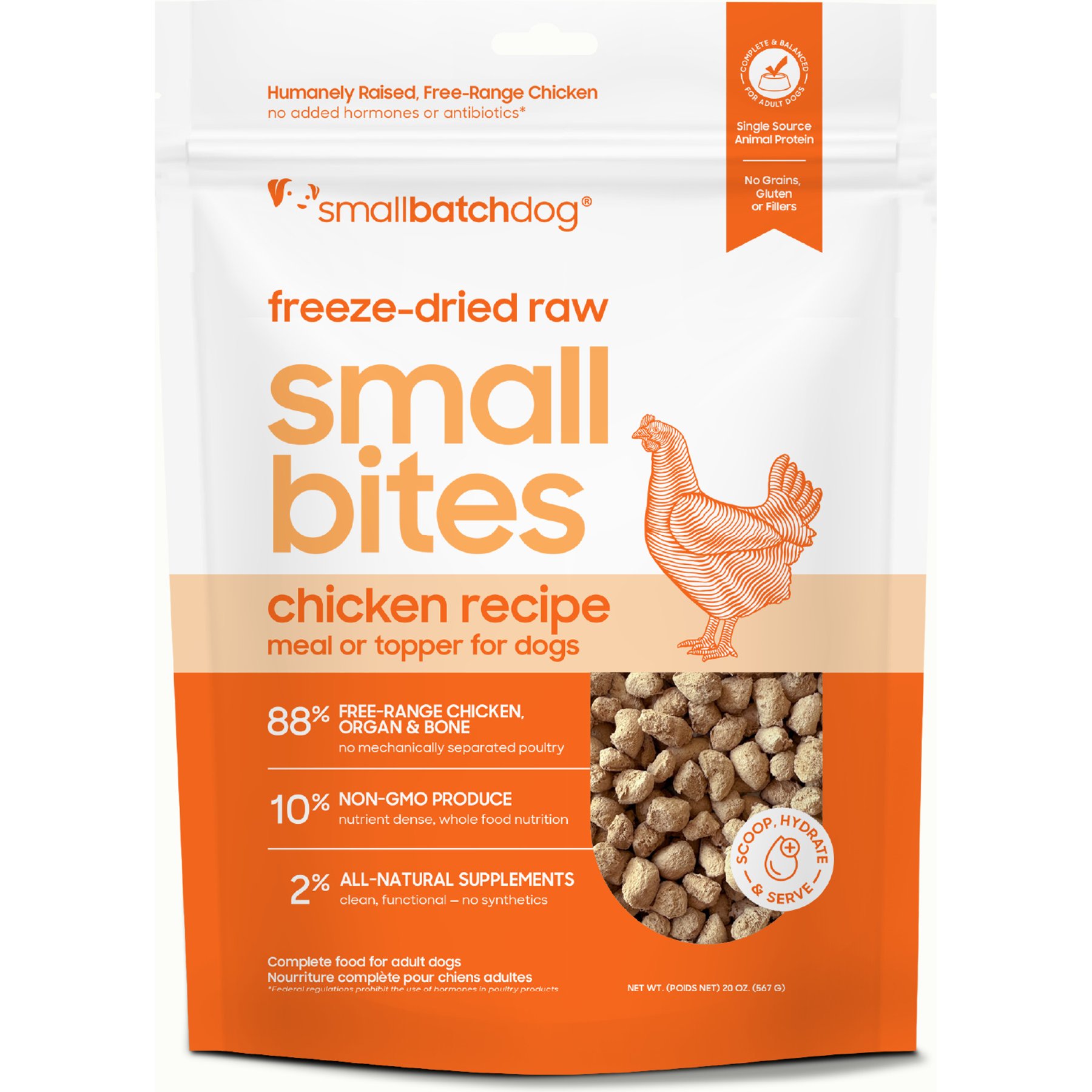 14 Ingredients: Chicken (with Ground Bone), Chicken Gizzards, Chicken, Chicken Liver, Chicken Hearts, Organic Carrots, Organic Sweet Potatoes, Organic Zucchini, Organic Blueberries, Mixed Tocopherols (a Preservative)