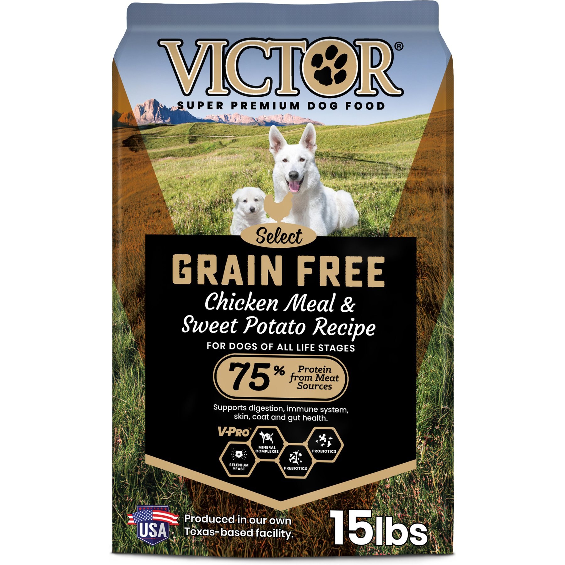 49 Ingredients: Chicken Meal, Peas, Chicken Fat (preserved with mixed Tocopherols), Garbanzo Beans, Sweet Potato, Yeast Culture, Blood Meal Conventionally Dried, Menhaden Fish Meal (source of DHA-Docosahexaenoic Acid