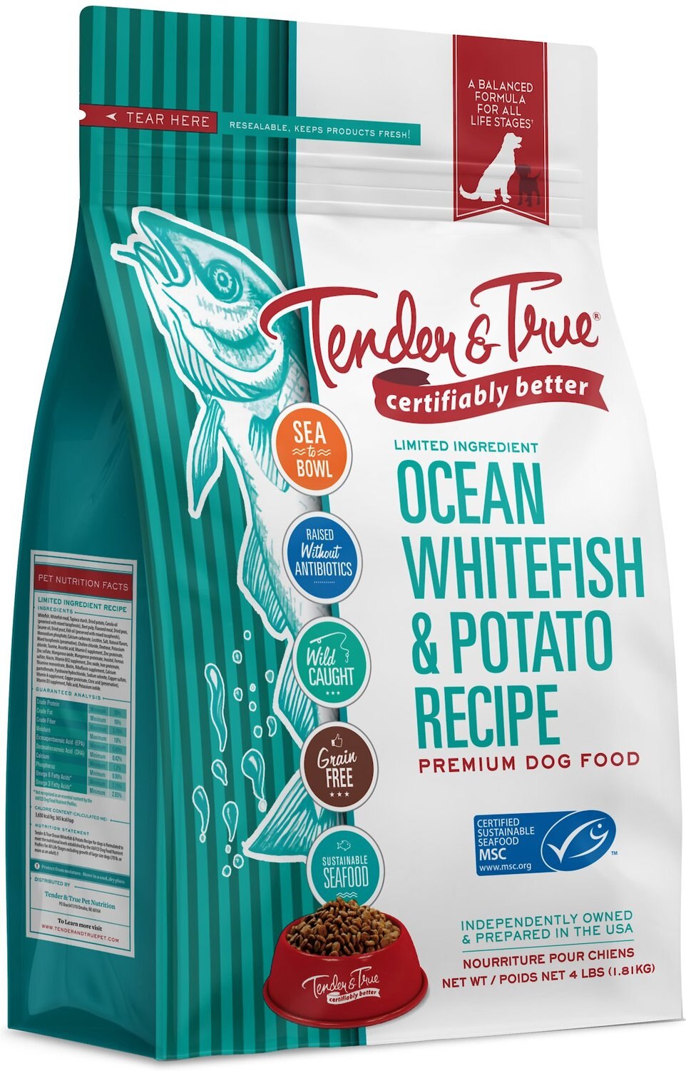 42 Ingredients: Whitefish, Whitefish Meal, Tapioca Starch, Dried Potato, Canola Oil (Preserved with Mixed Tocopherols), Beet Pulp, Flaxseed Meal, Dried Peas, Sesame Oil, Dried Yeast, Fish Oil (Preserved with Mixed To