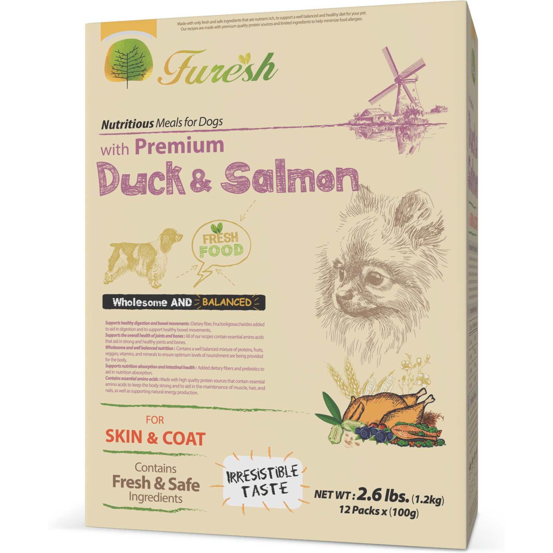 14 Ingredients: Duck Powder, Chicken Powder, Corn Powder, Wheat Flour, Soybean Oil Meal, Rice Flour, Cheese Powder, Hydrolyzed Chicken Meat, Hydrolyzed Salmon, Beet-Pulp, Blueberry, Fructooligosaccharide, Refined Chi